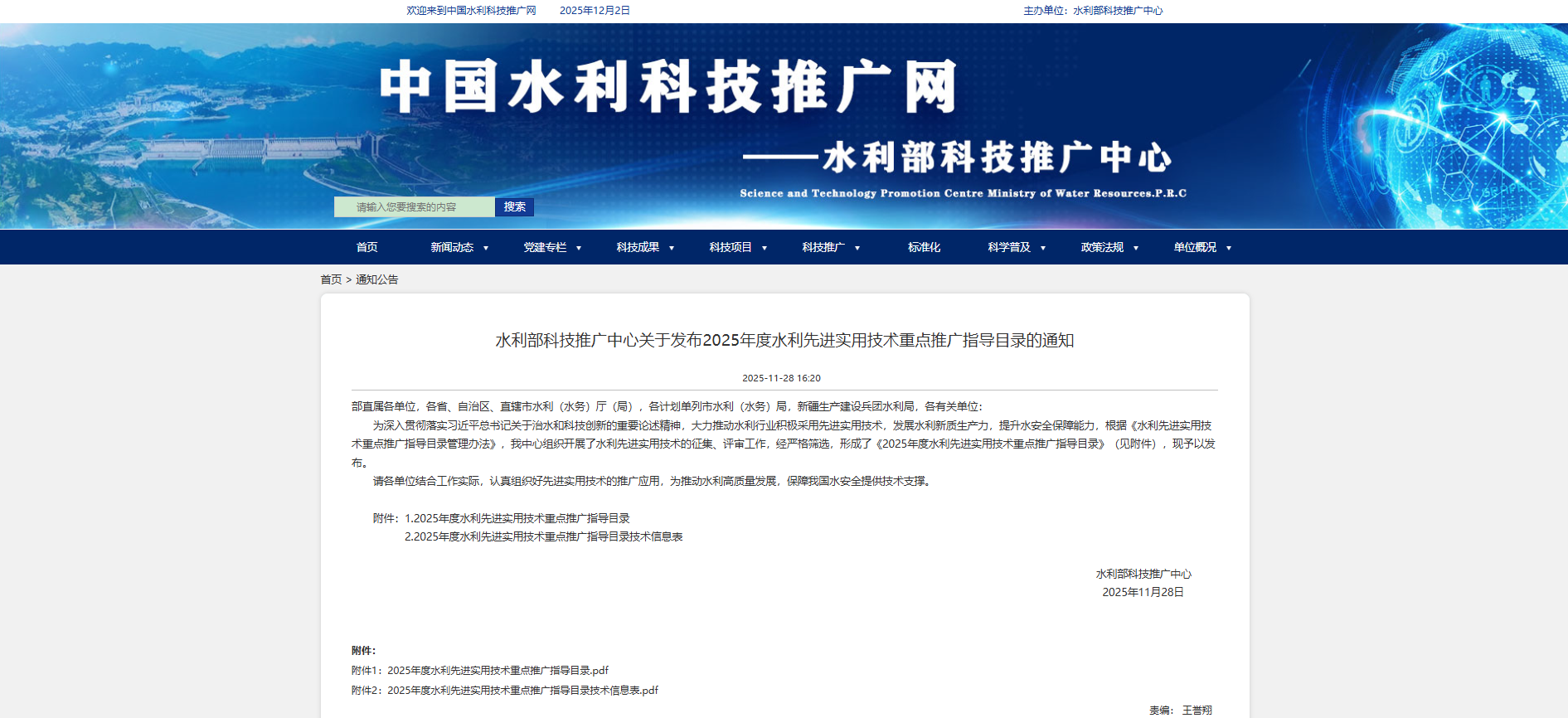 近日,水利部科技推廣中心發布《2025年度水利先進實用技術重點推廣指導目錄》,公司自主研發的“智慧灌區信息化建設關鍵技術”成功入選。