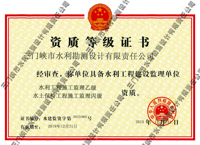 熱烈祝賀我公司水利工程監(jiān)理資質成功晉升乙級